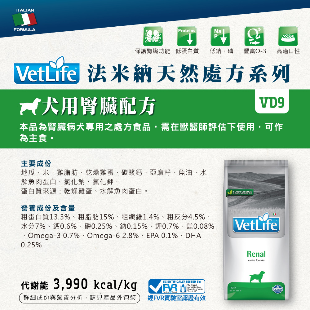 VDR-9-法米納 Farmina ND 獸醫天然處方系列-犬用-腎臟配方 2KG(8010276025241)