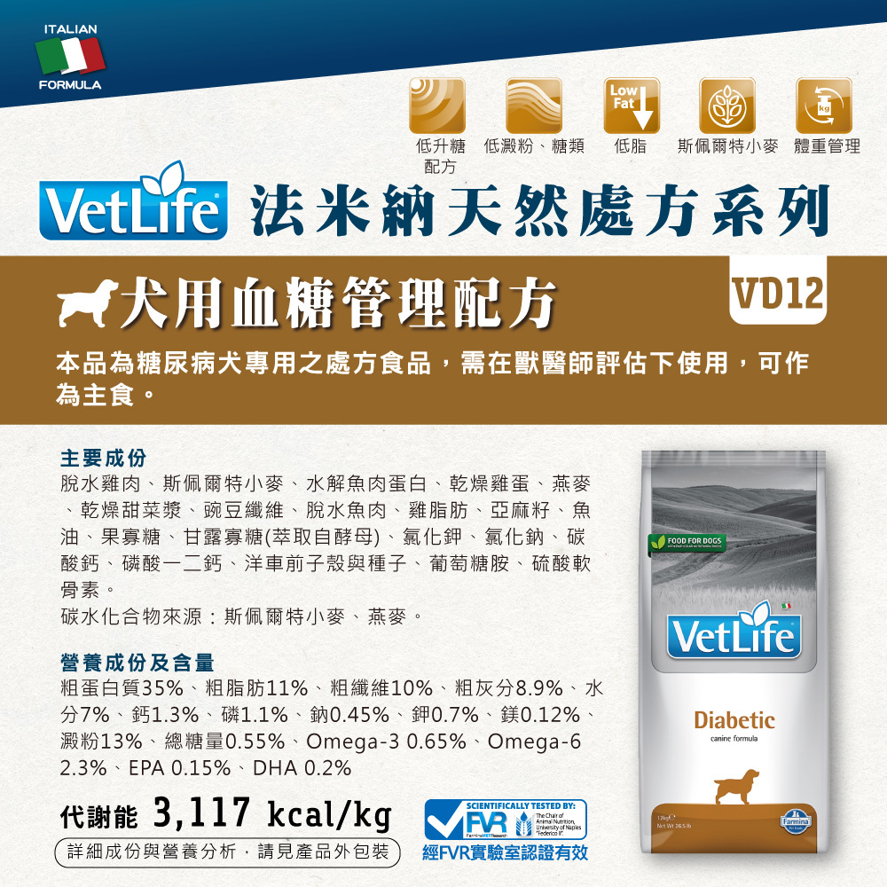 停產-VDD-12 法米納Farmina ND 獸醫寵愛天然處方系列犬用-犬用 血糖管理配方 12KG(8010276031846)
