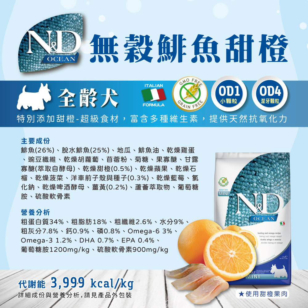 OD-1-法米納-天然海洋系列-全齡犬-頂級無穀鯡魚甜橙-小顆粒 2.5kg(8010276036452)