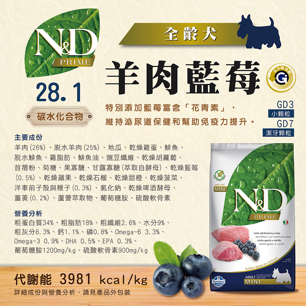 GD-3-法米納-天然頂級無穀系列-全齡犬-羊肉藍莓-小顆粒 7kg(8010276021823)