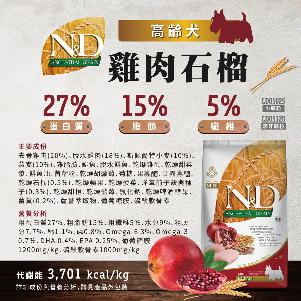 LD-5-法米納-天然低穀系列-老犬-潔牙顆粒-雞肉石榴 12kg(8010276030542)