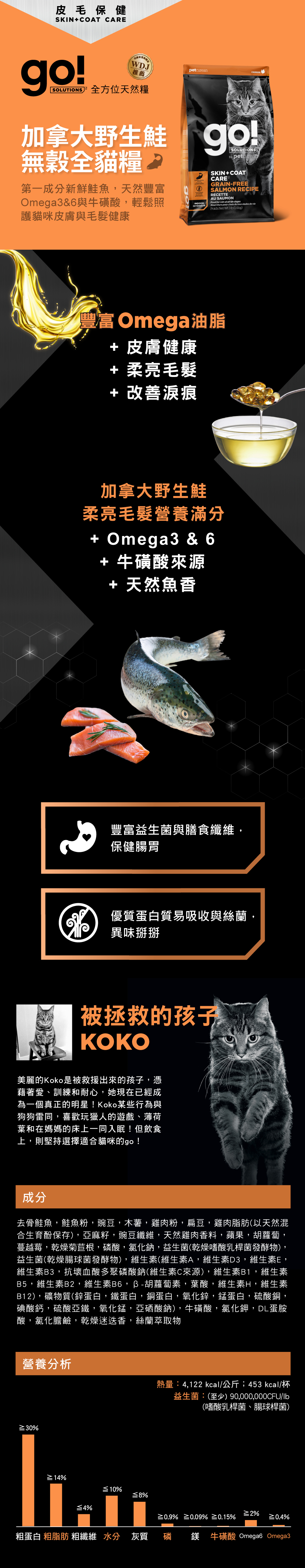 另有贈品 加拿大GO!皮毛保健無穀系列 野生鮭魚全貓配方 8磅 815260005029