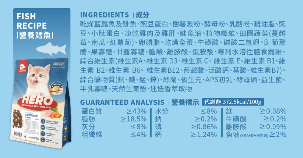 HERO MAMA 初乳晶球糧-營養鱈魚(幼貓) 300G