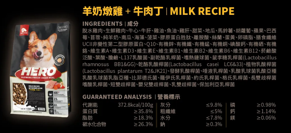 HERO MAMA益生菌凍乾晶球糧 羊奶燉雞+牛肉丁 1.65KG (犬用) (4711126600581)
