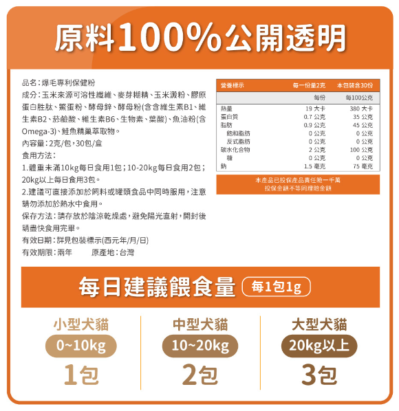 先詢問-【毛孩時代】爆毛專利保健粉(30包/盒) (4713530190634)