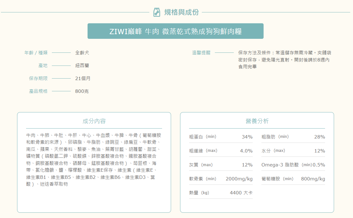 紐西蘭ZiwiPeak 巔峰 微蒸熟成鮮肉狗糧 - 牛肉 1.5KG (9421038210017)